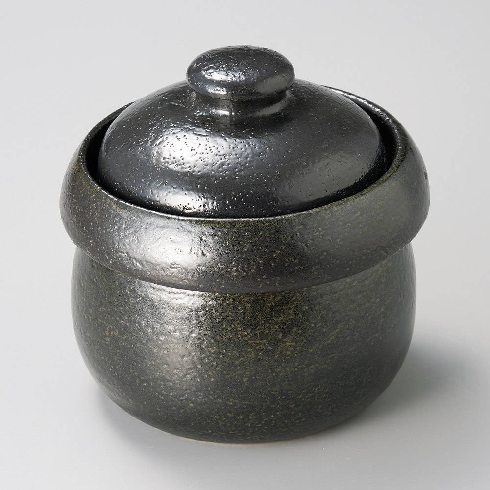 南蛮黒吹ご飯鍋2合炊(中蓋付)(萬古焼) (直火,手造り)