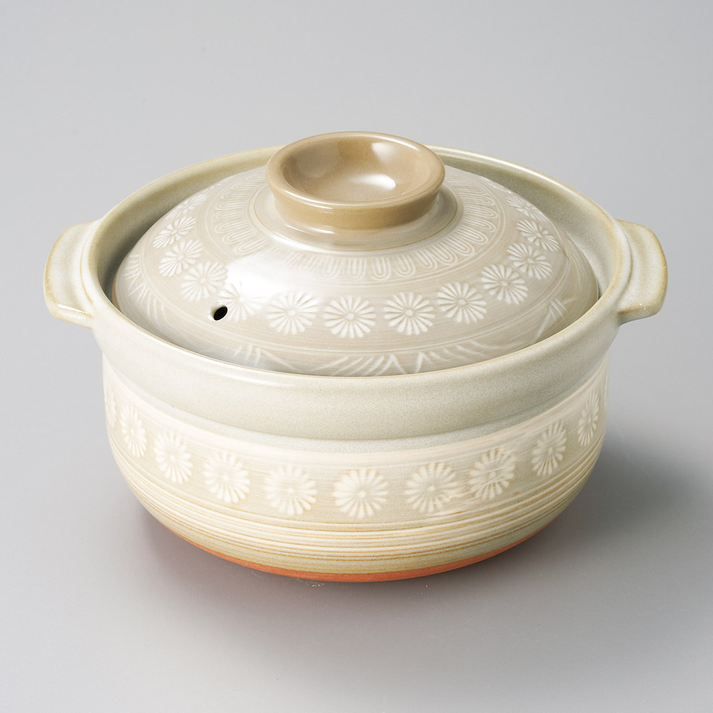 銀峯菊花粉引ご飯鍋2合炊(中蓋付)(萬古焼) (直火)