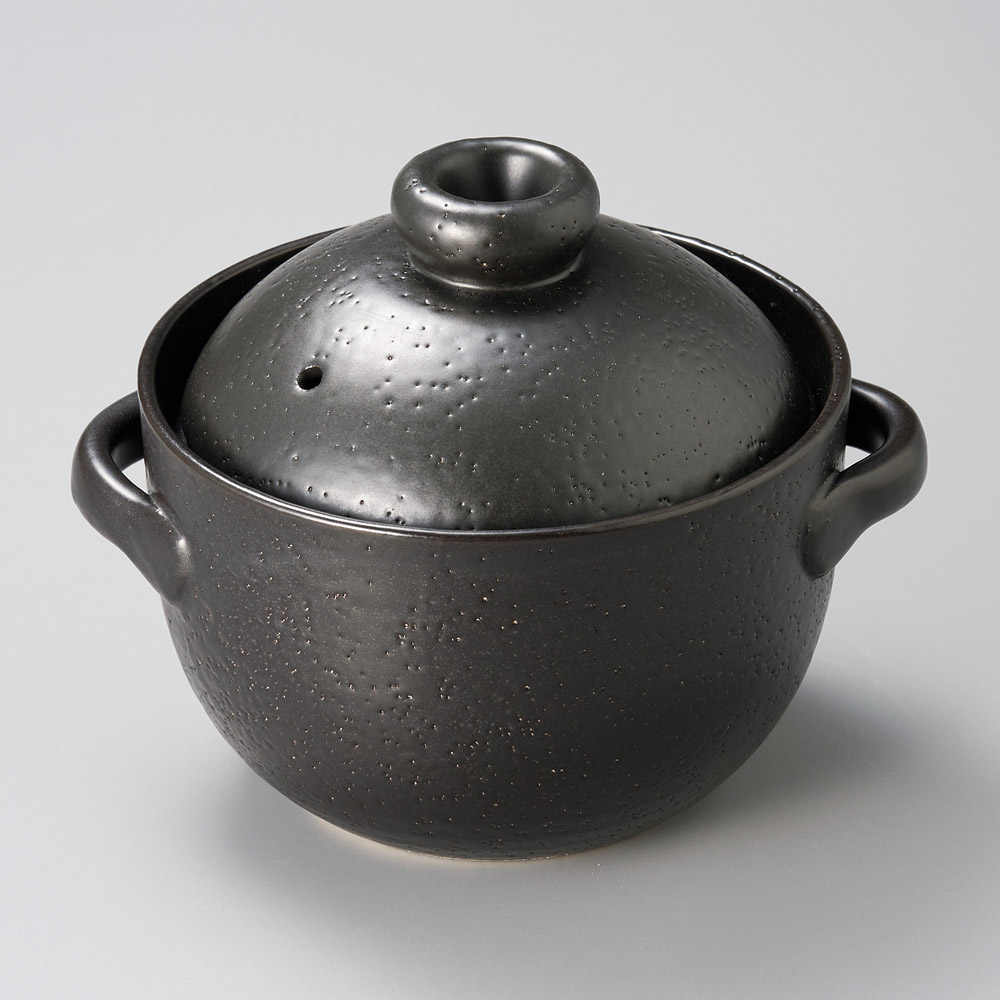 黒モダンご飯鍋2合炊(中蓋付)(萬古焼) (直火)
