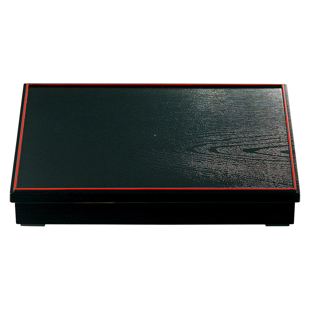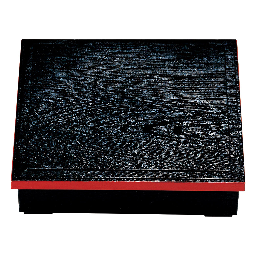 [A]8.5寸木目松花堂(仕切別) 黒渕朱(内塗無)