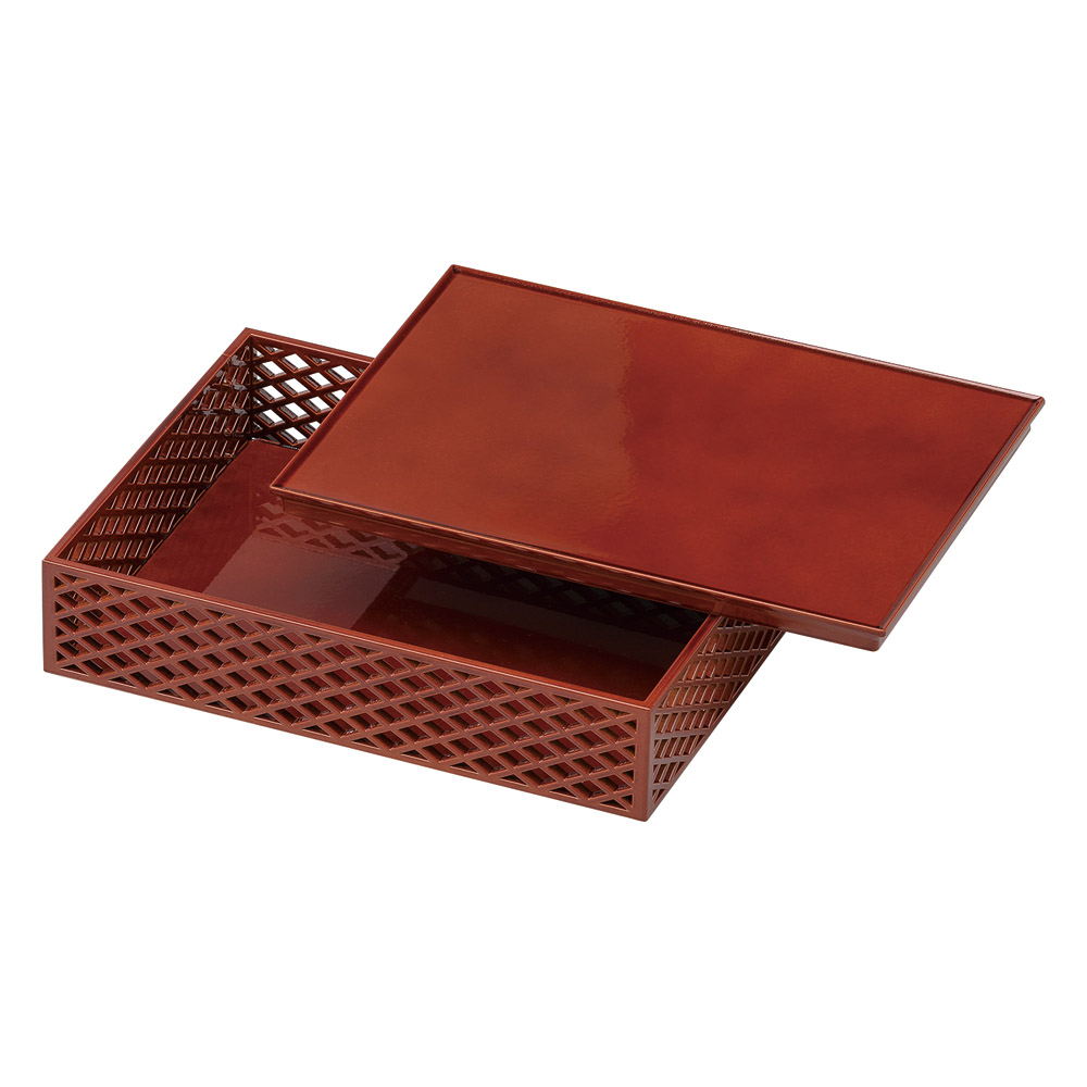 [A]尺3長角京格子松花堂(蓋) 春慶裏黒