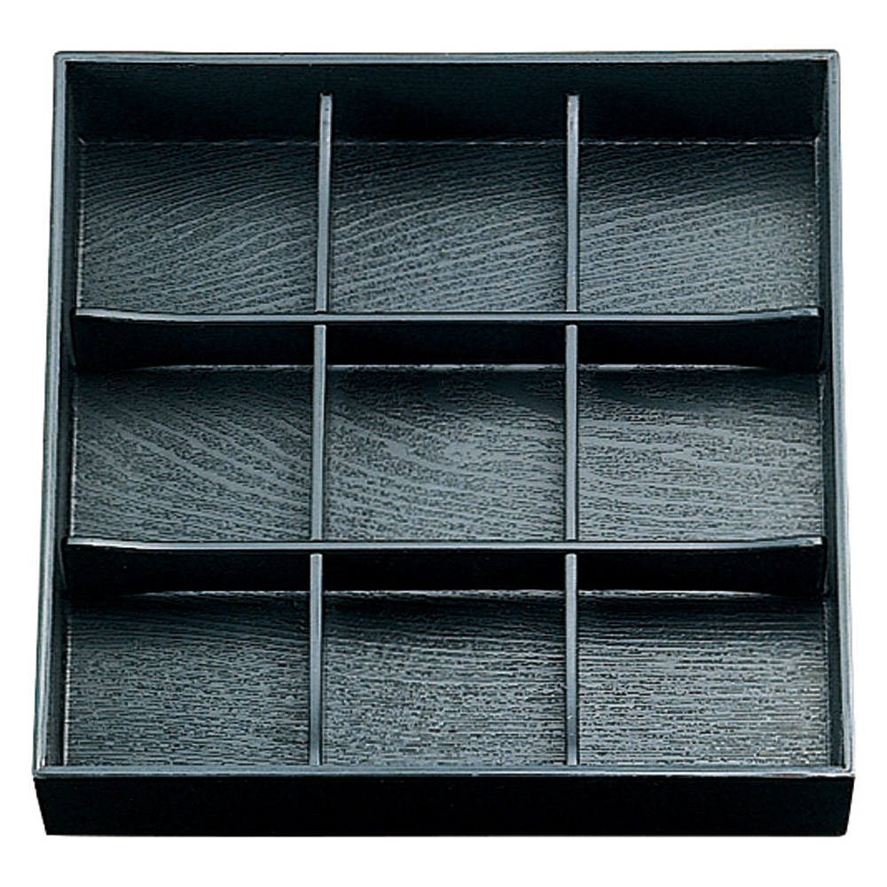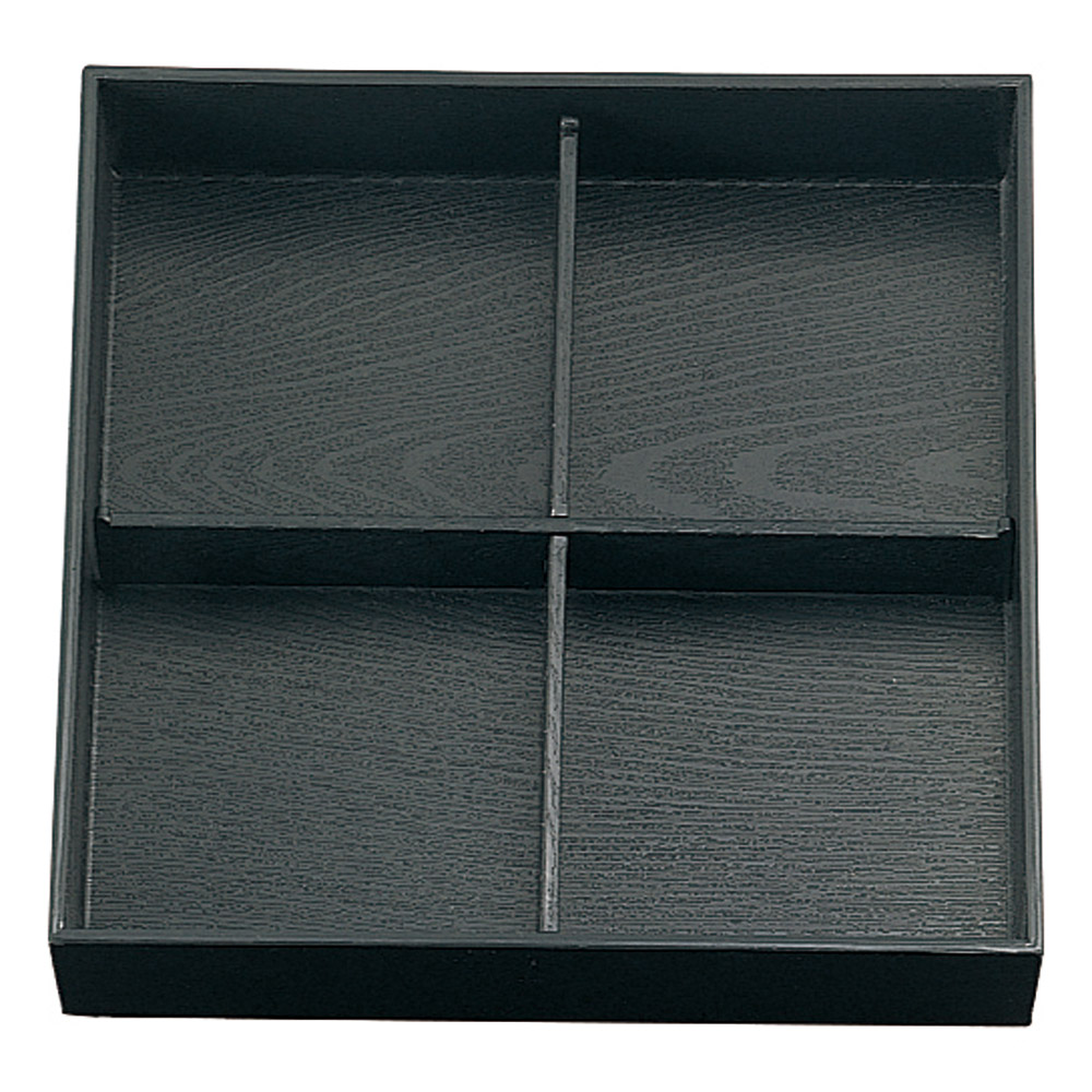 [A]8.5寸木目松花堂(仕切別) 溜内黒(内塗品)