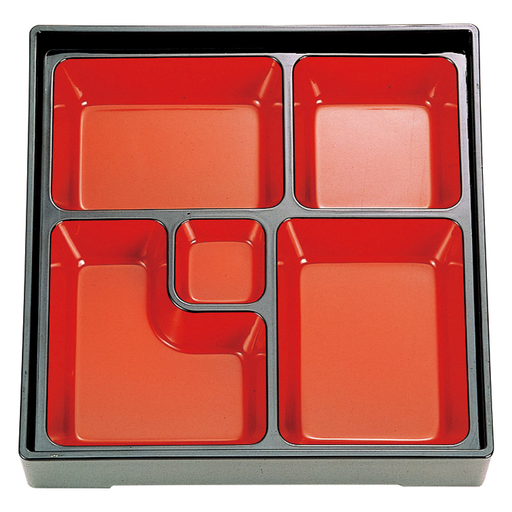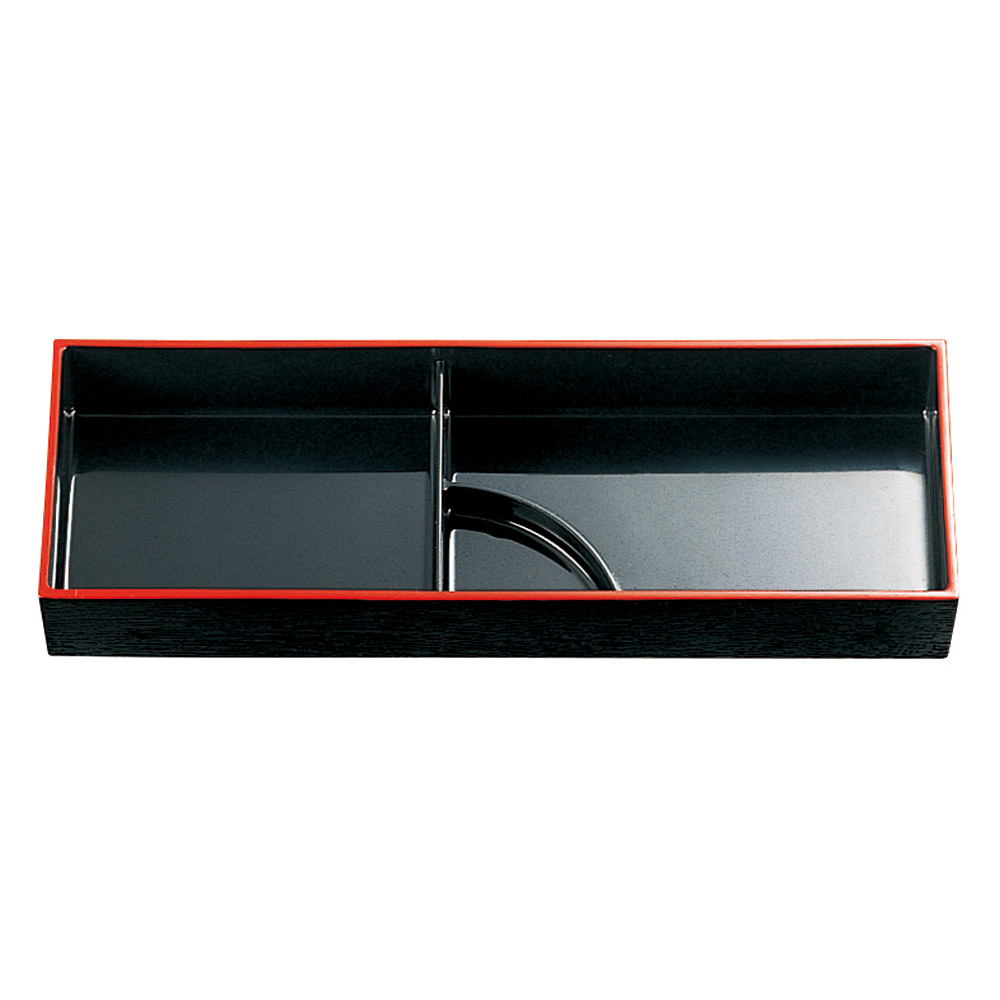 [A]8.5寸木目松花堂(仕切別) 黒渕朱(内塗品)
