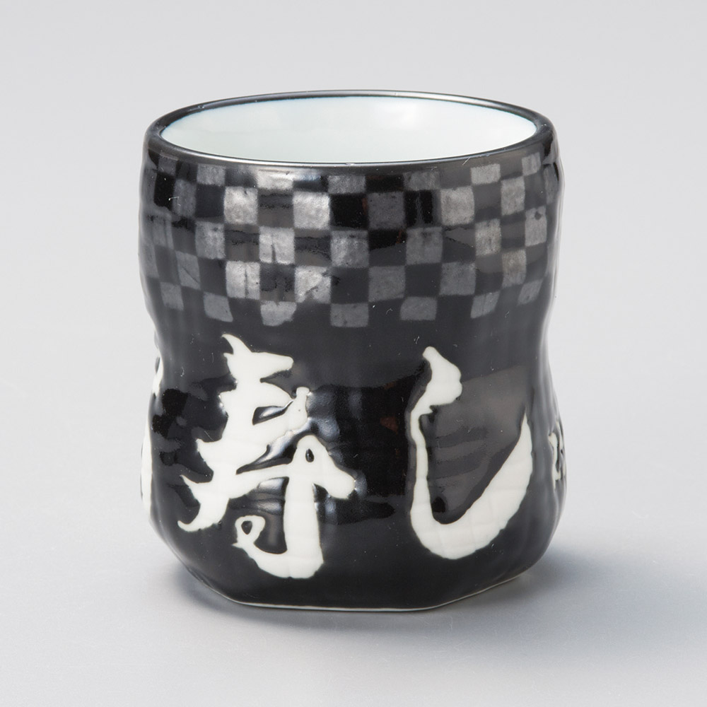 瓢型市松銀彩寿司湯呑