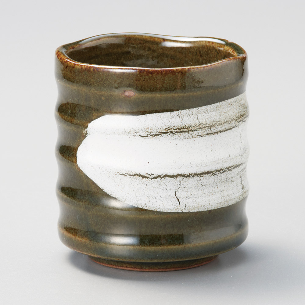 織部白刷毛大寿司湯呑