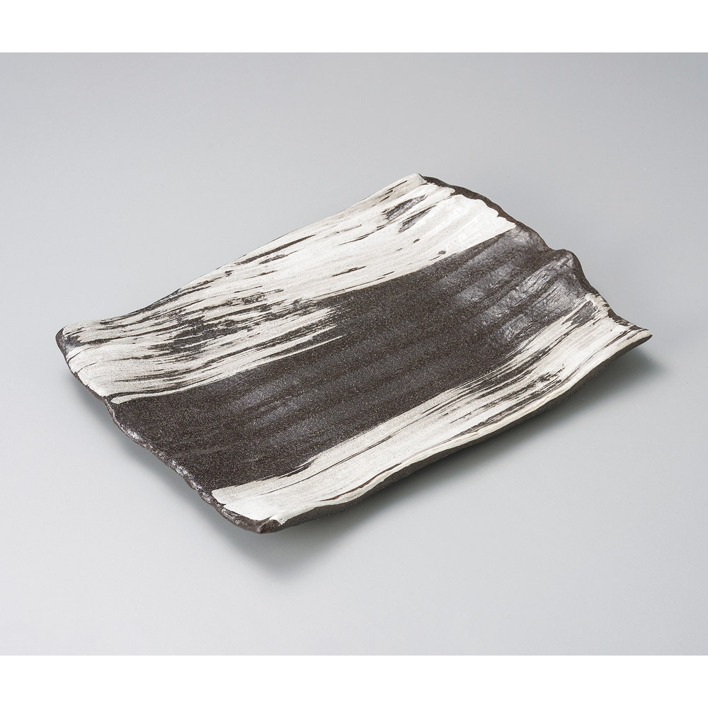 黒釉白刷毛10号長角皿(萬古焼)