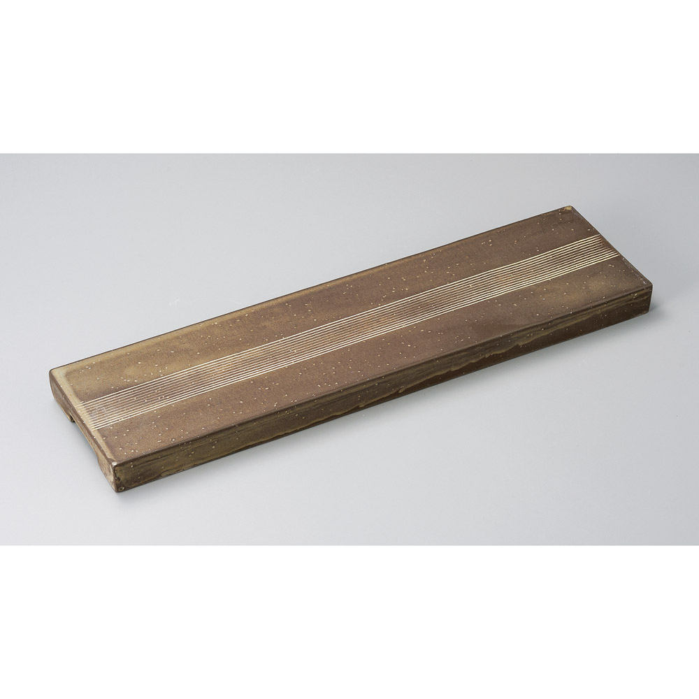 灰釉一本櫛目細長皿
