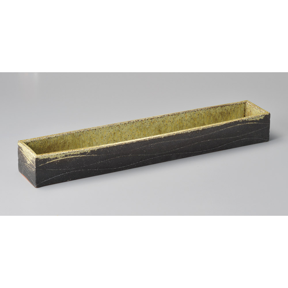 サビ釉ヒワ流し17.0長角皿 (土物)