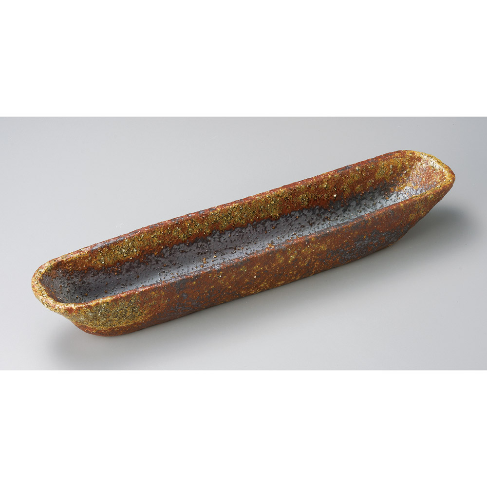 茶窯変20.0長皿(信楽焼)