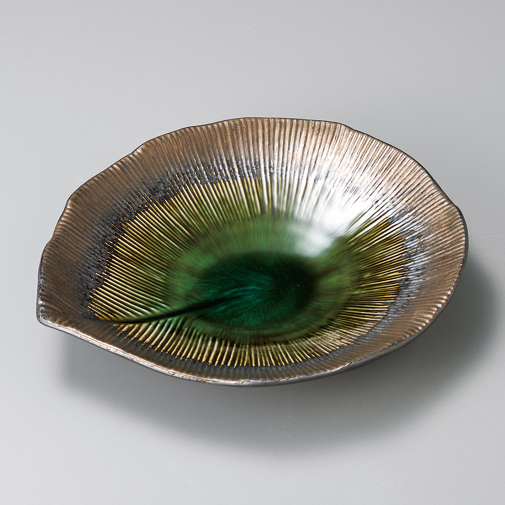 伊賀織部木の葉型8.0寸丸皿