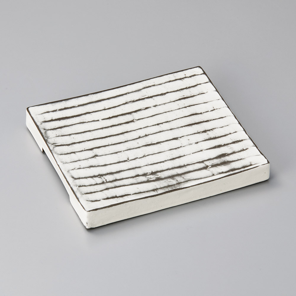 黒窯変クシ目6.8角皿(両面使用可)(信楽焼)