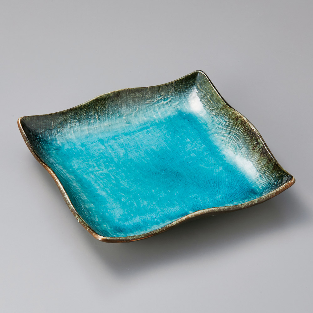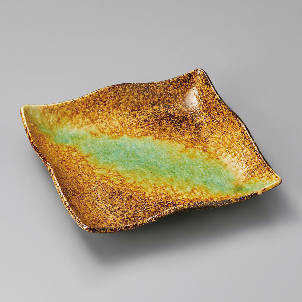 砂ビードロ8号正角皿(萬古焼) (土物)
