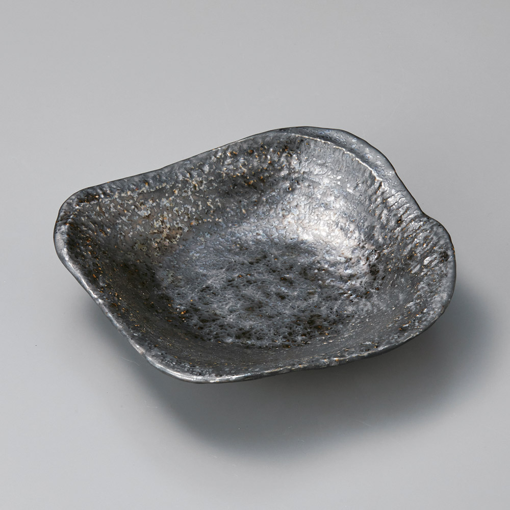 銀黒ちぎり正角皿