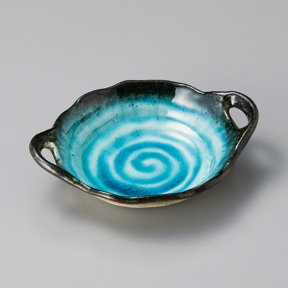 黒雲海四つ足10.0長角皿 (土物,手造り)