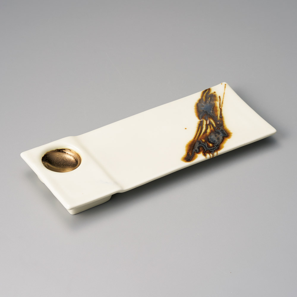 黒窯変金ちらし7.6長角皿(両面使用可)