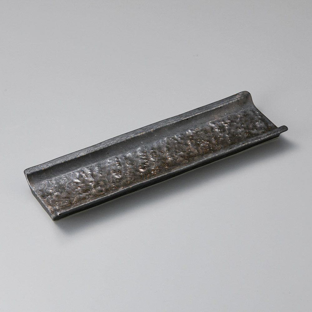 炭化土石目半切長角皿(さんま)
