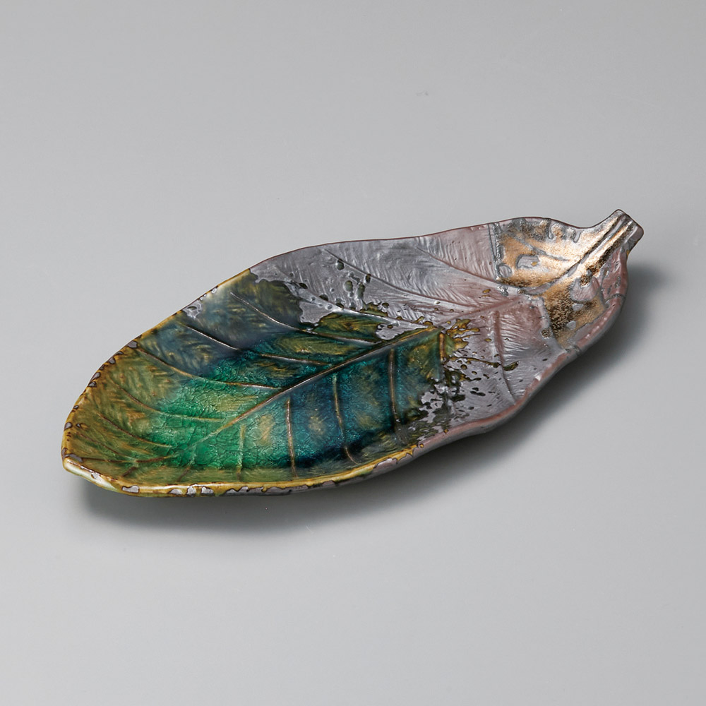 いぶし金彩織部葉型楕円皿