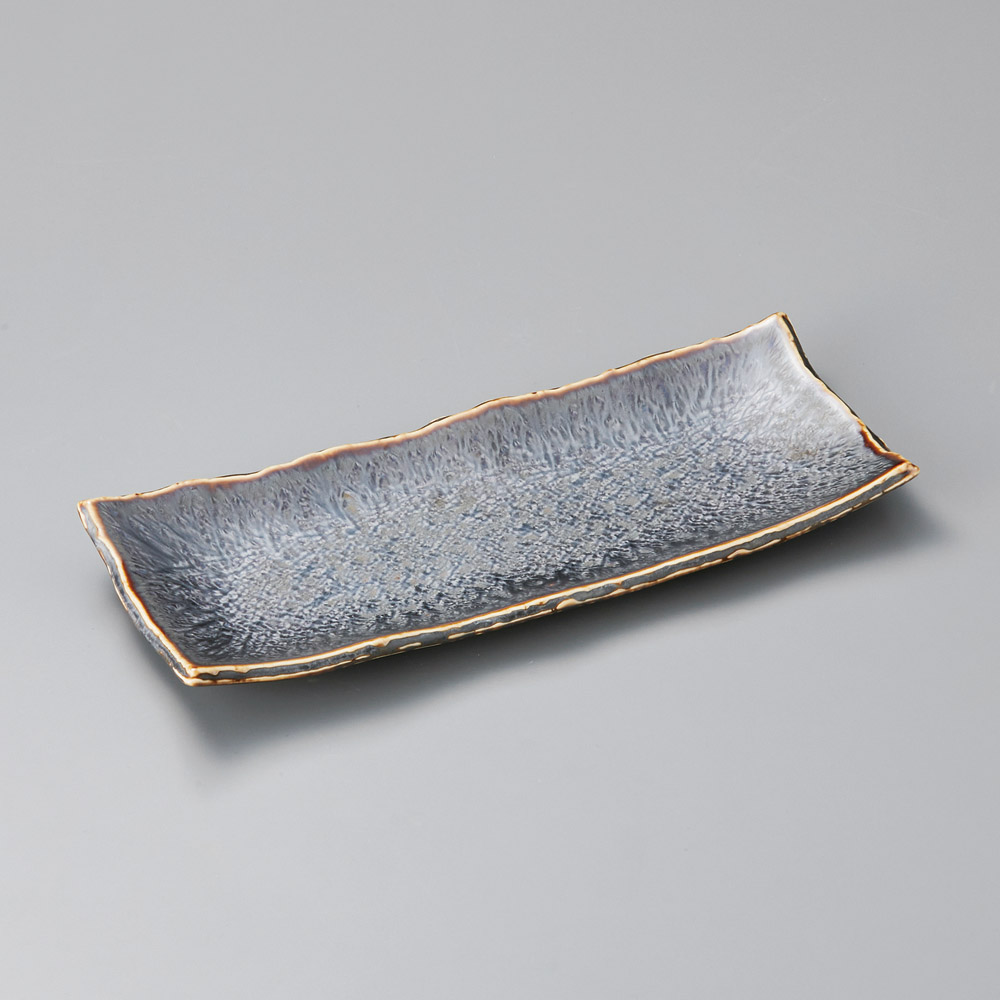 黒窯変掛け分け8.0足付長角皿(信楽焼)