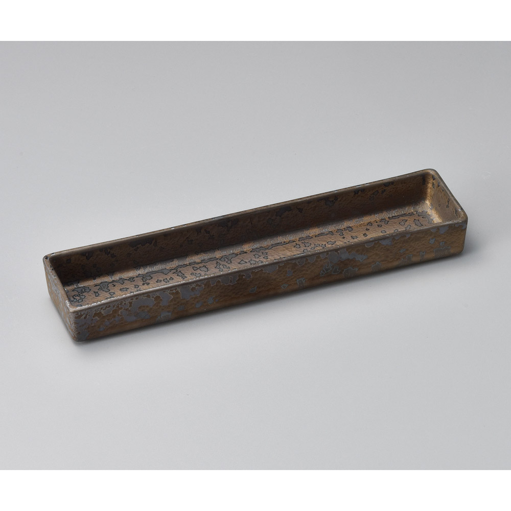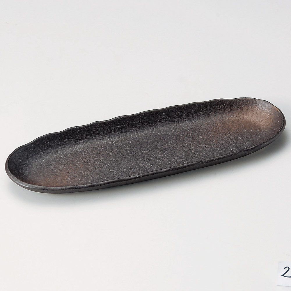 黒吹金彩(手造り)9号付出皿(萬古焼) (土物,手造り)
