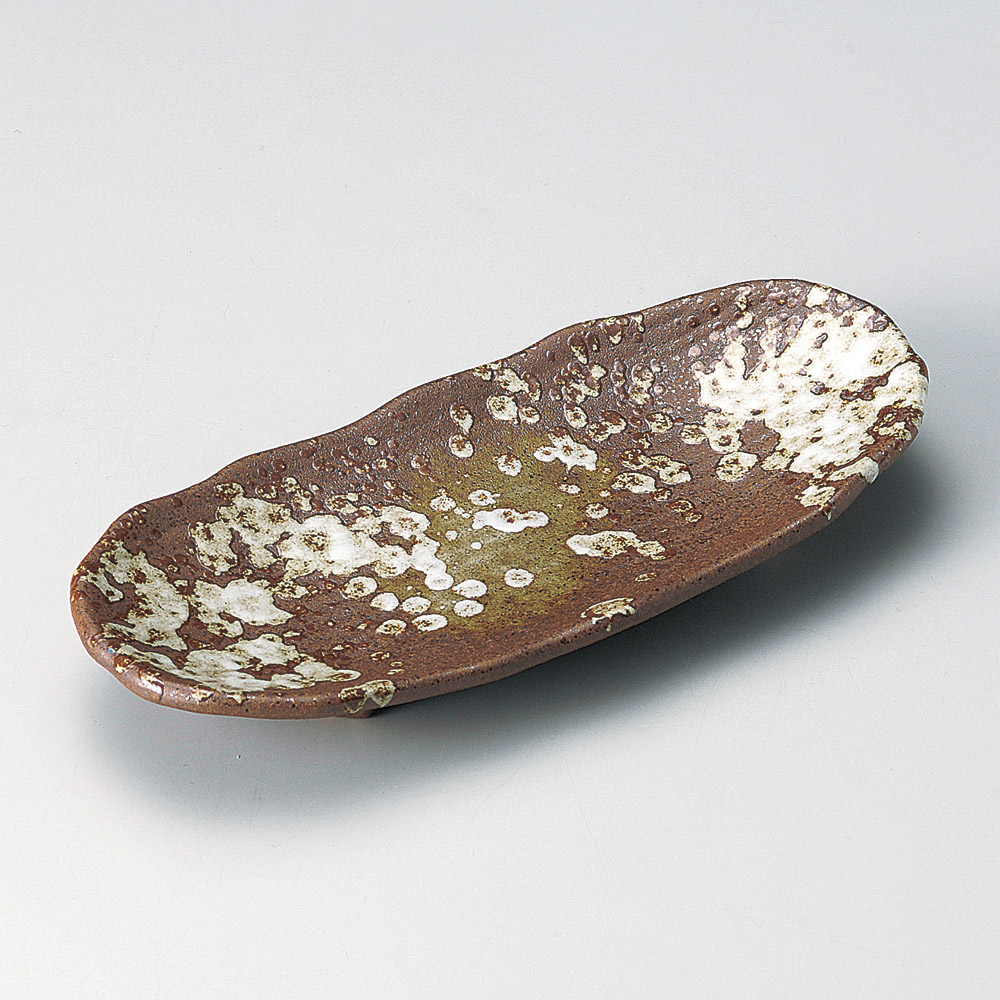 鉄砂釉渕波小判皿