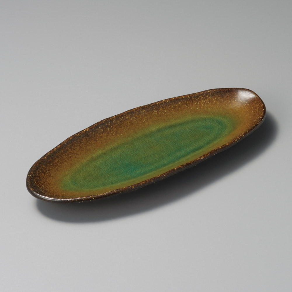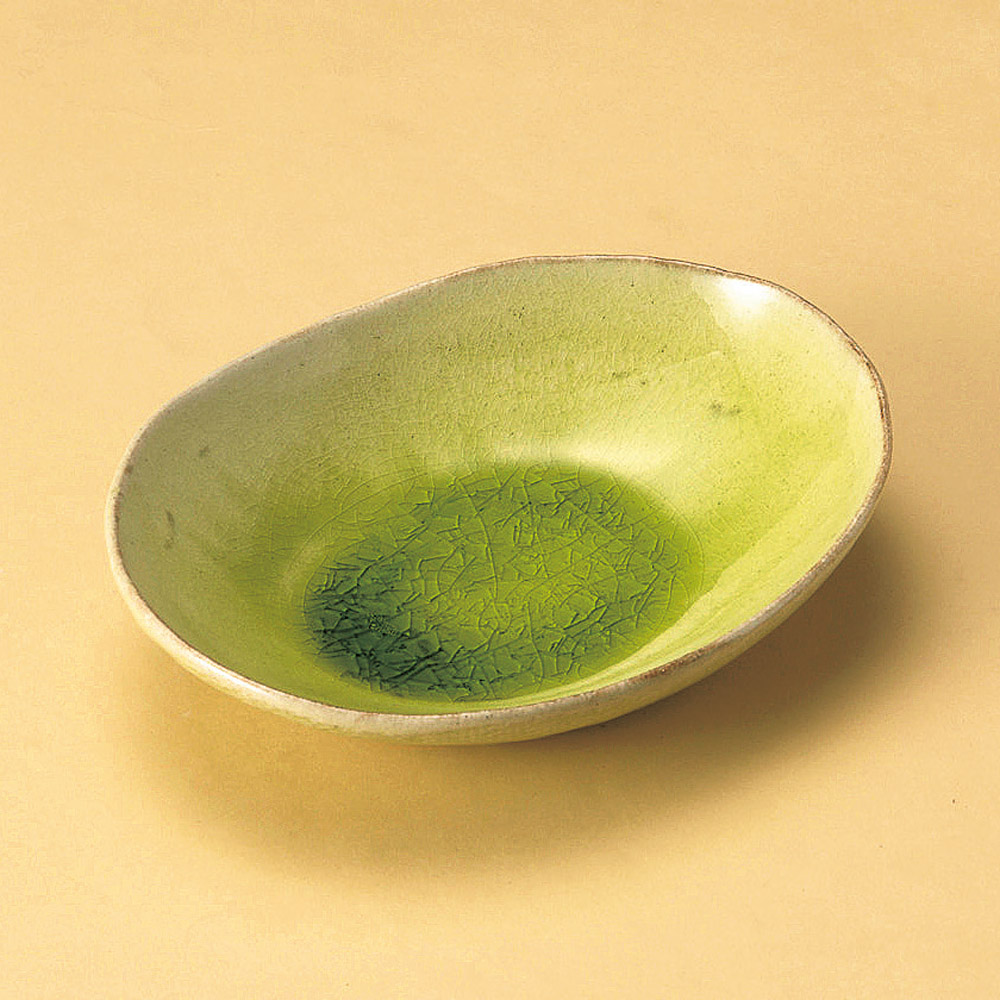 黄緑楕円皿(信楽焼)