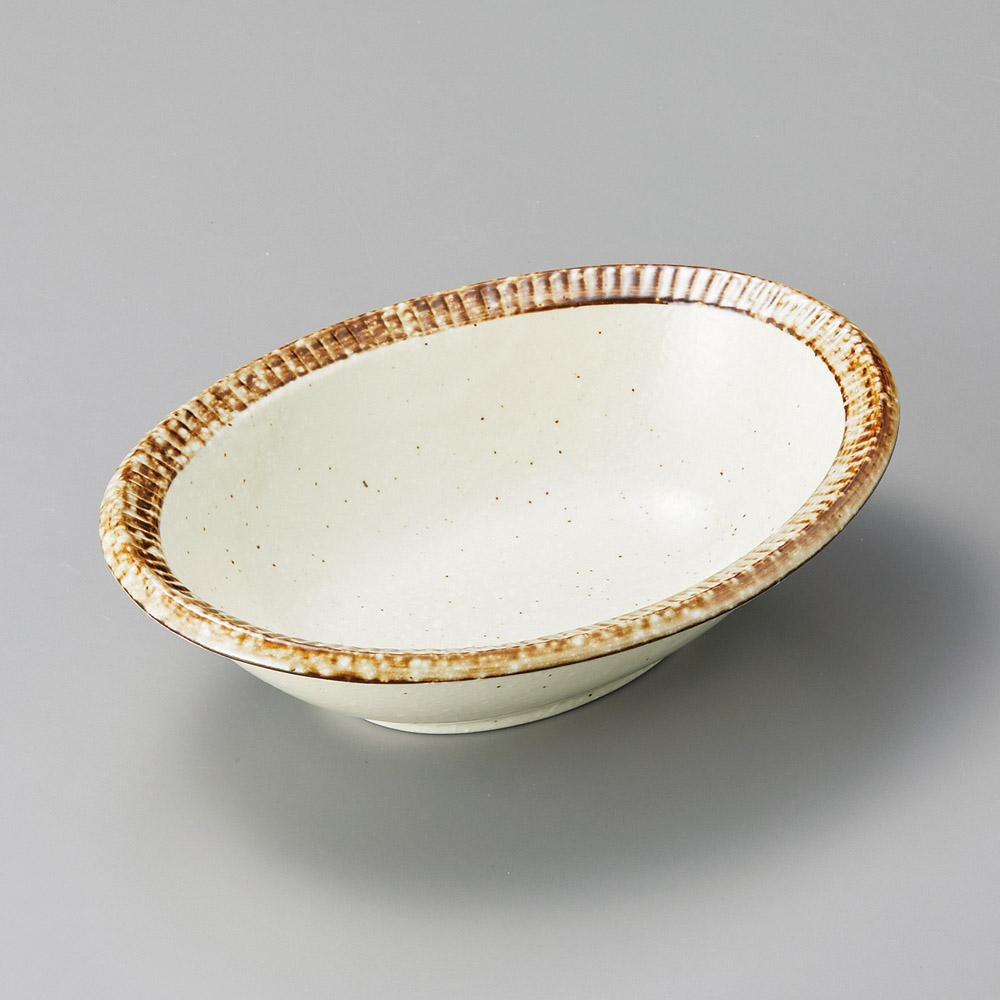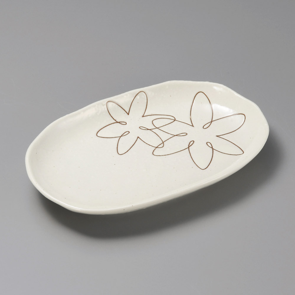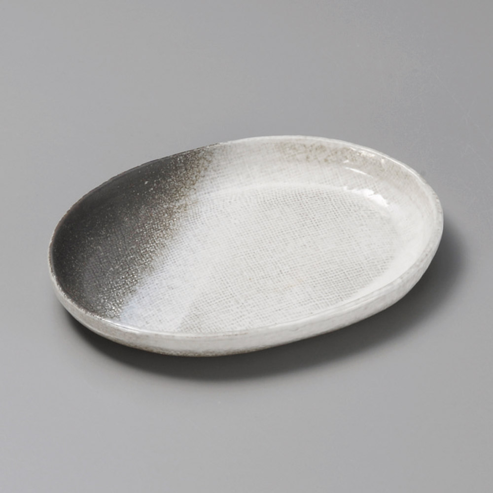 白粉引楕円深皿