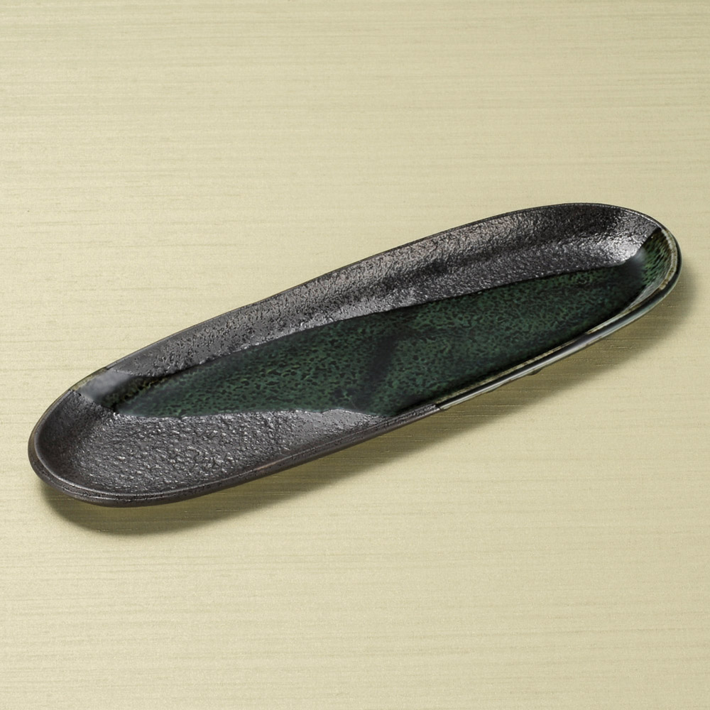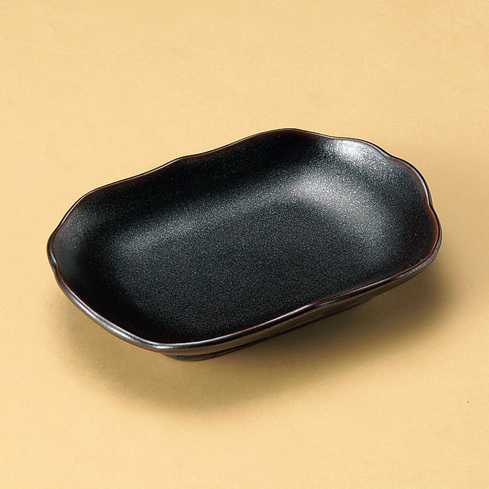 黒釉楕円皿