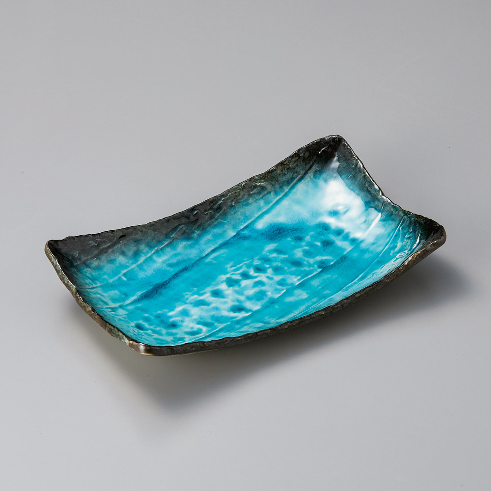 青地流水長角9.0焼物皿