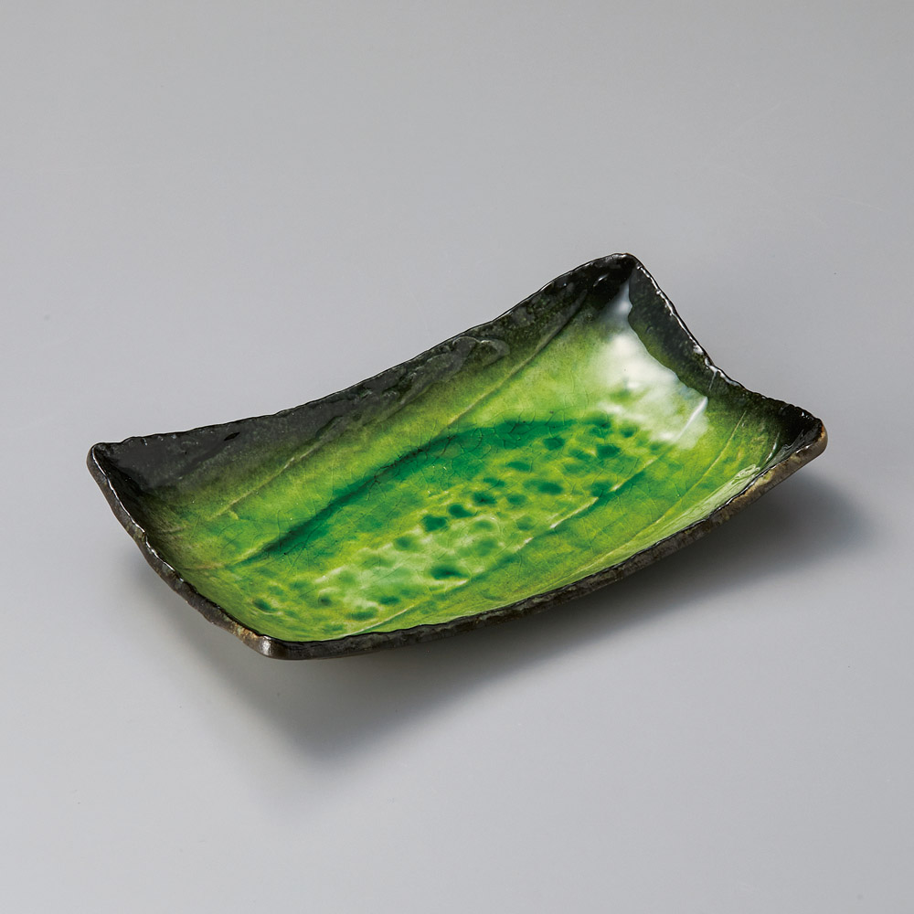 緑釉黄流し10.0しのぎ長角皿