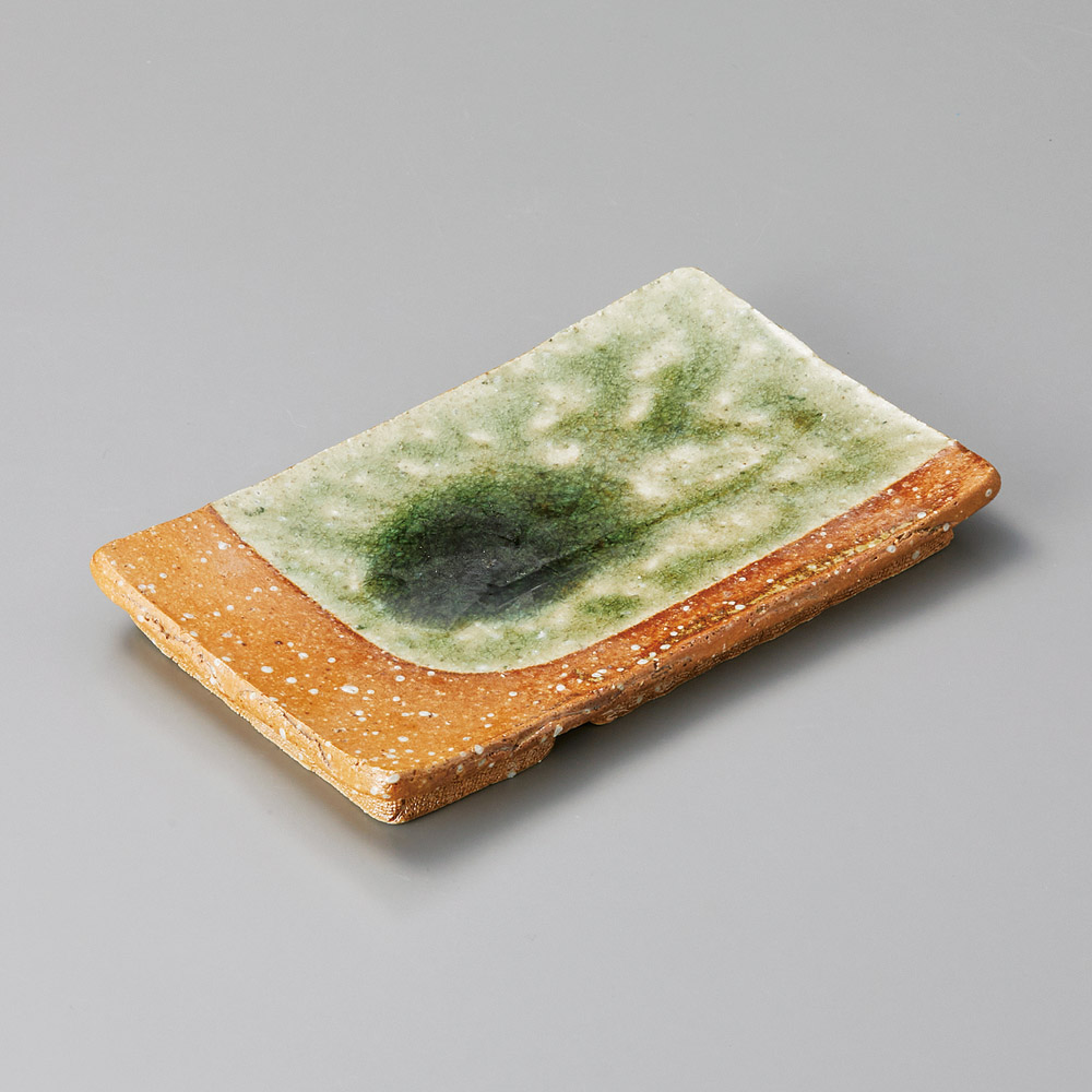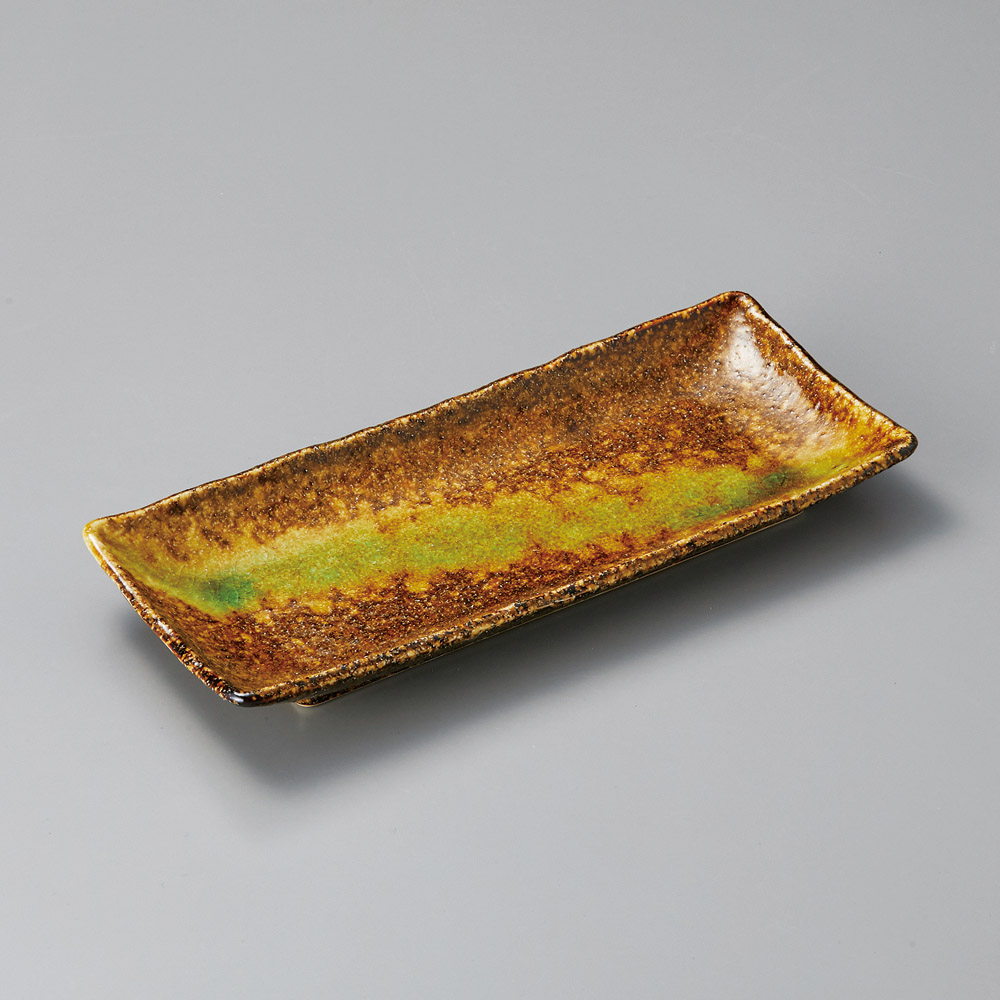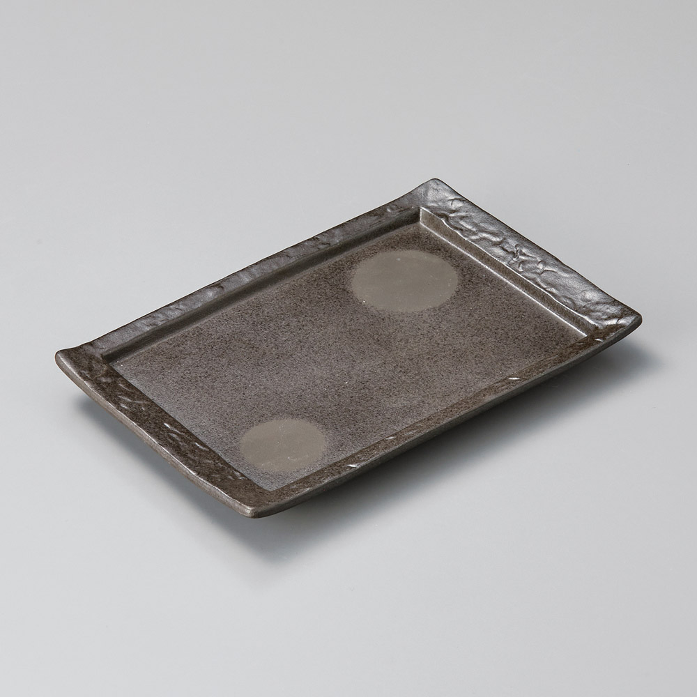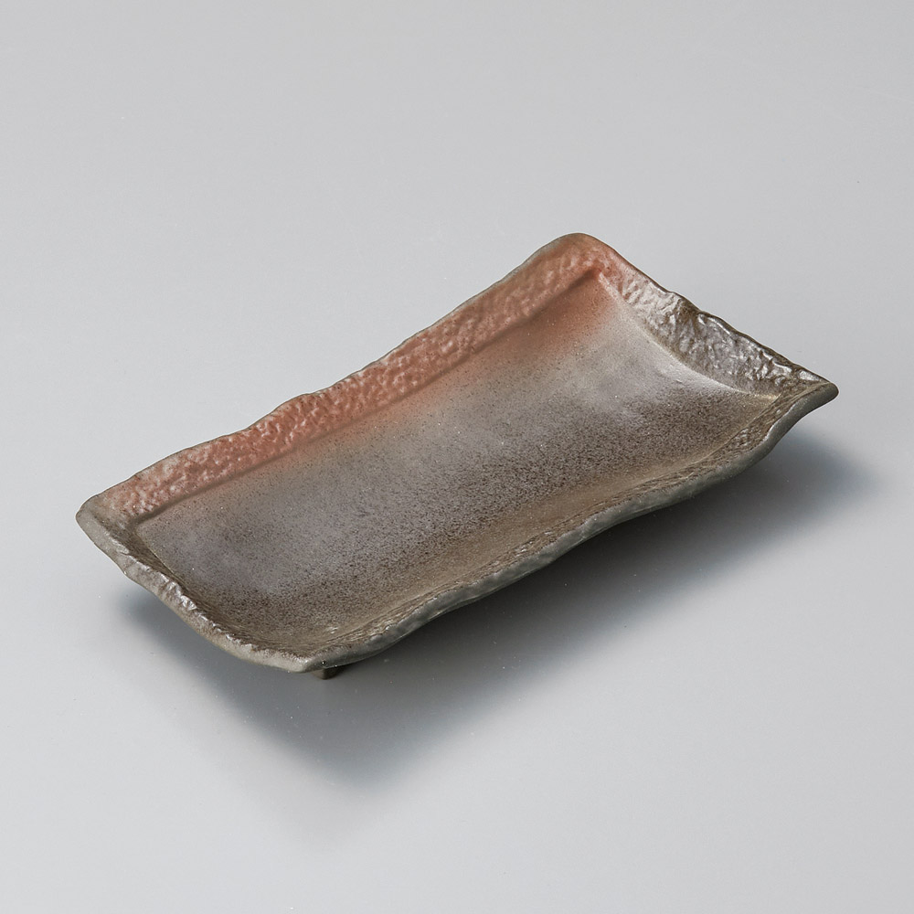 黒窯変掛け分けソギ7.0長角皿(信楽焼)