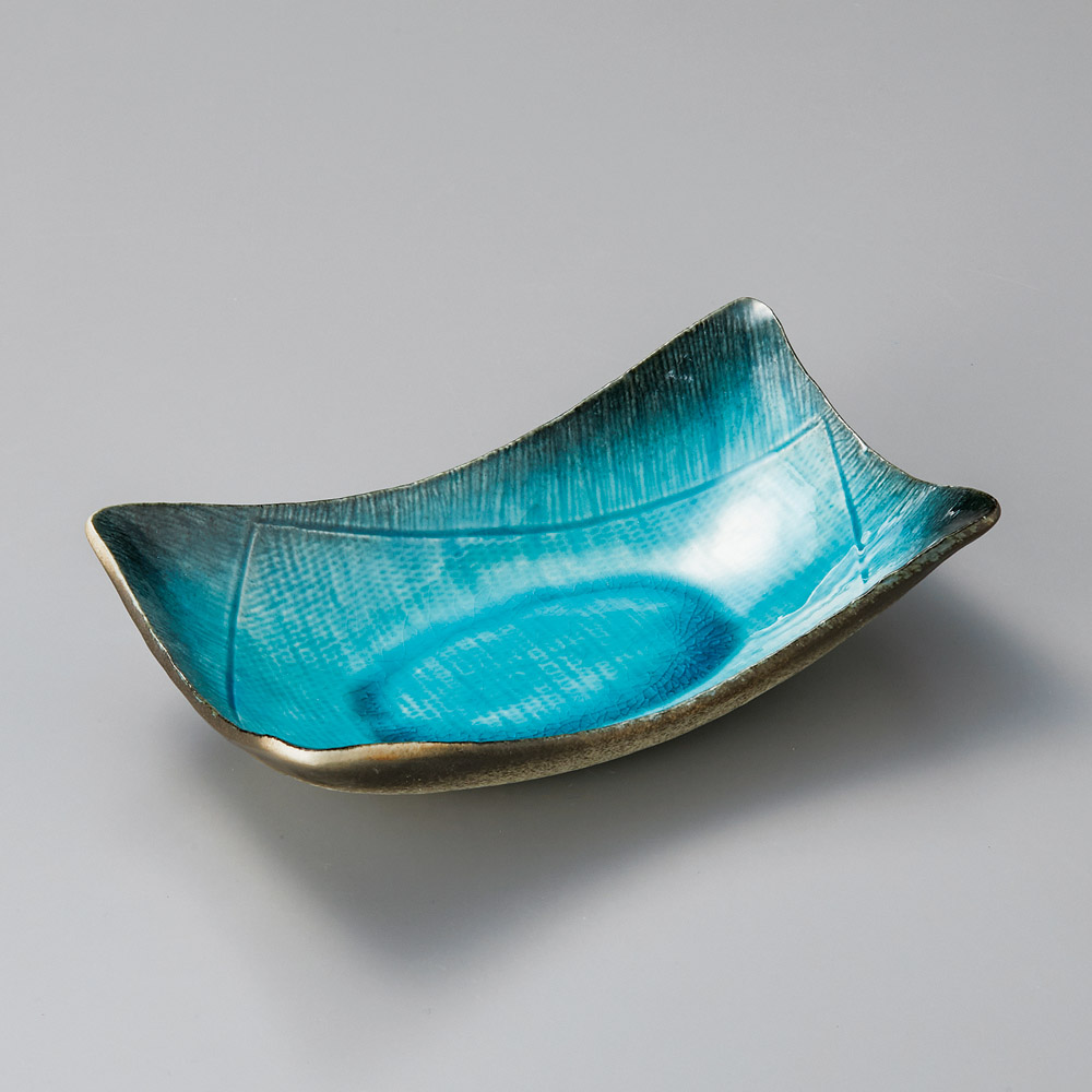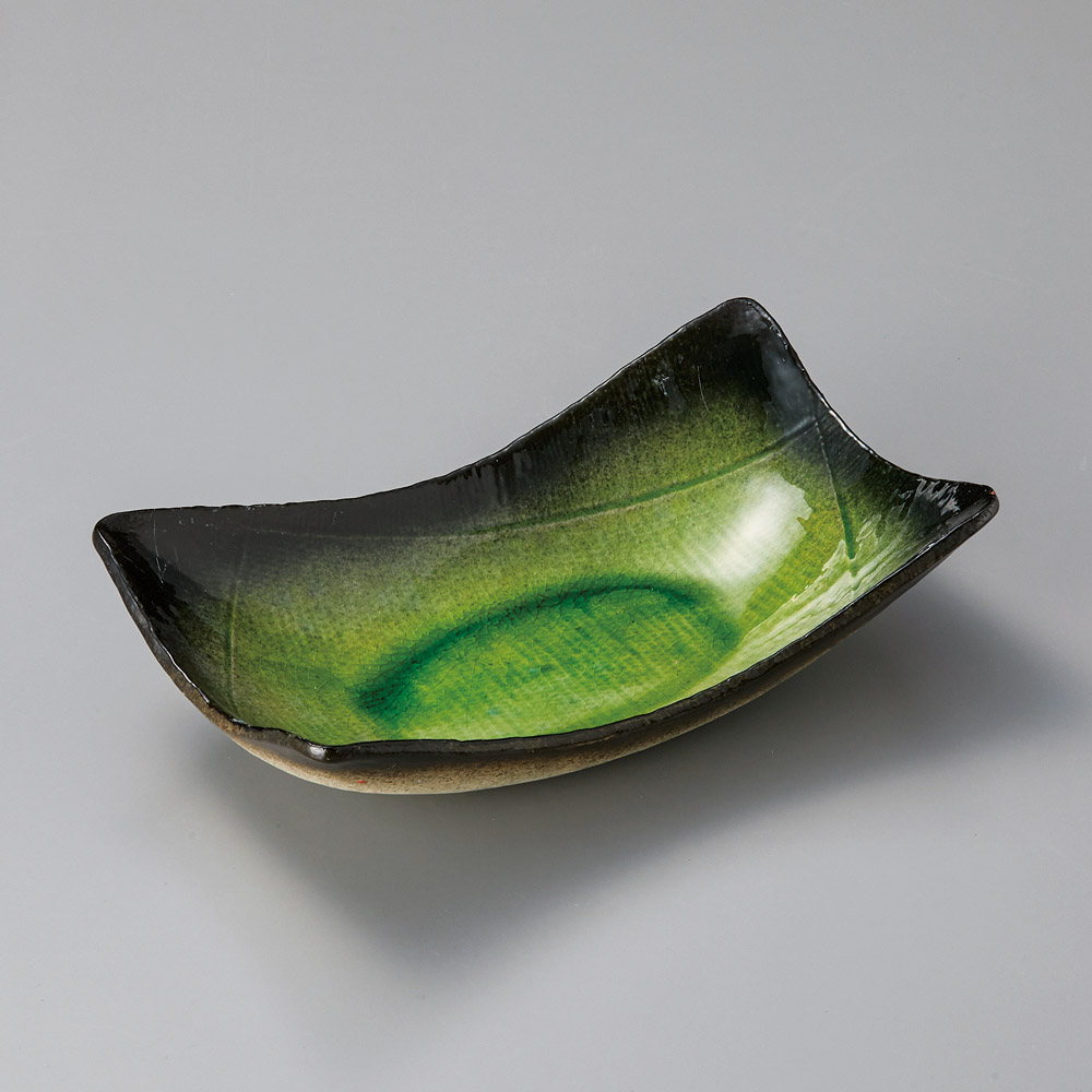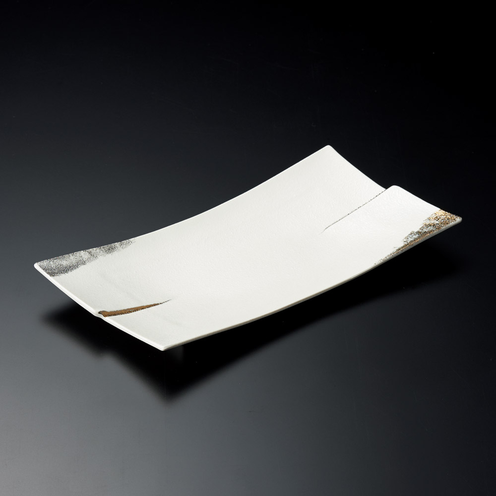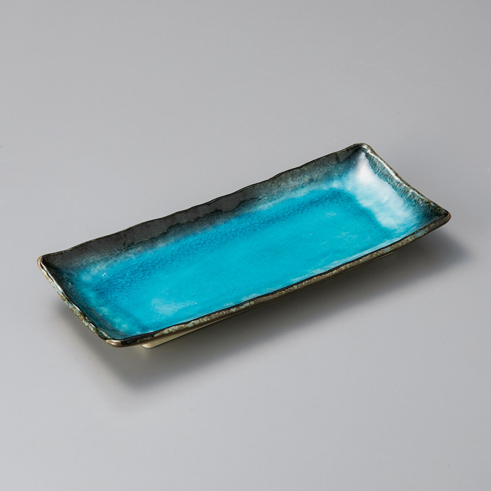 黒窯変掛け分けソギ7.0長角皿(信楽焼)