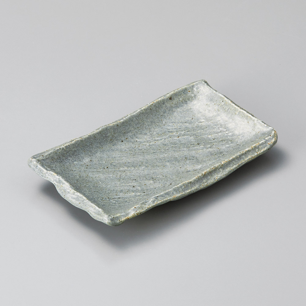 渕錆マリンブルー削ぎ彫長角焼物皿