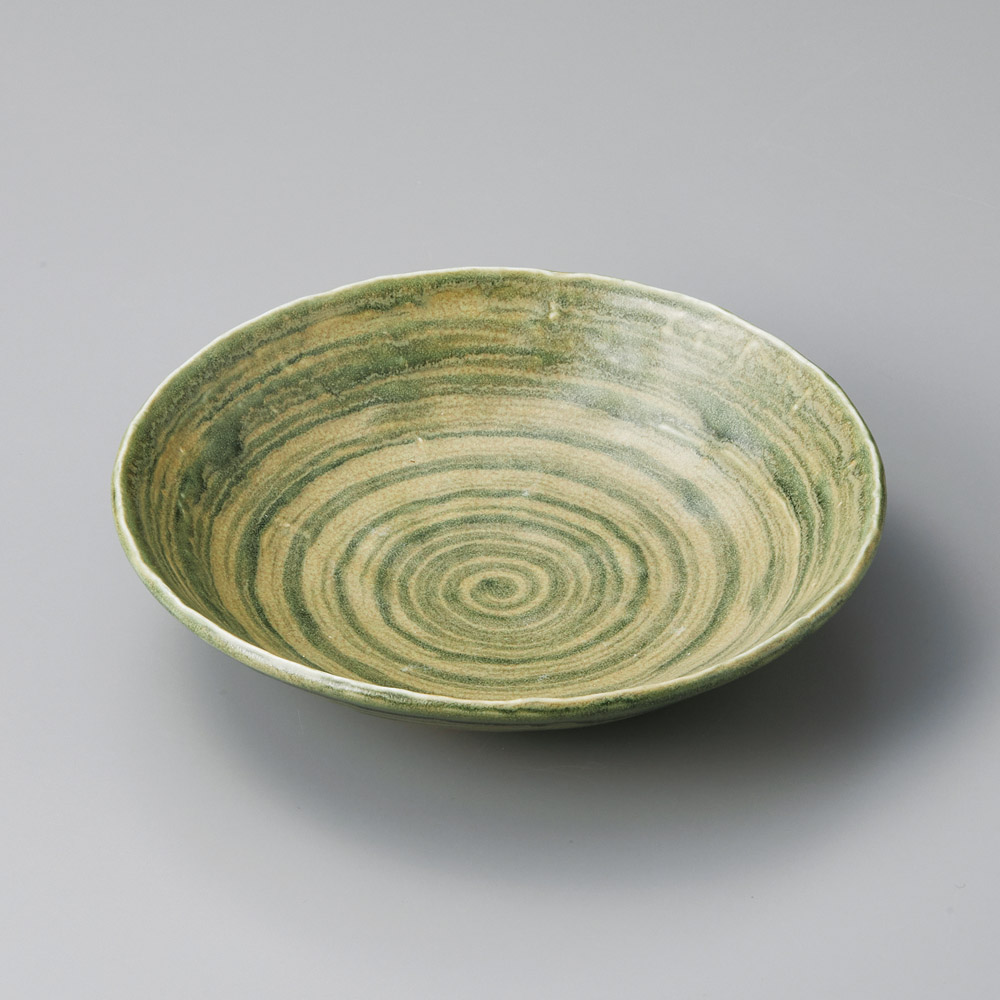 黒窯変刷毛目8.0足付楕円鉢(信楽焼)