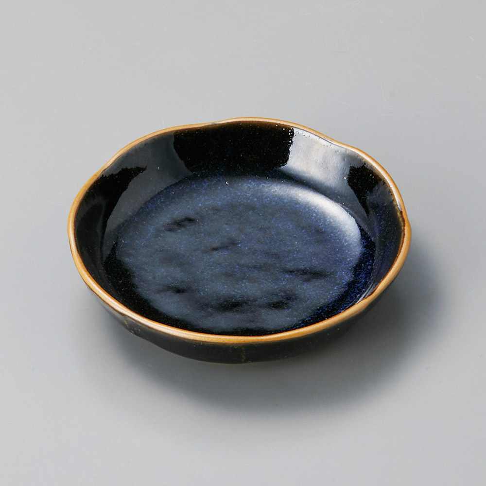 黒釉変型丸皿
