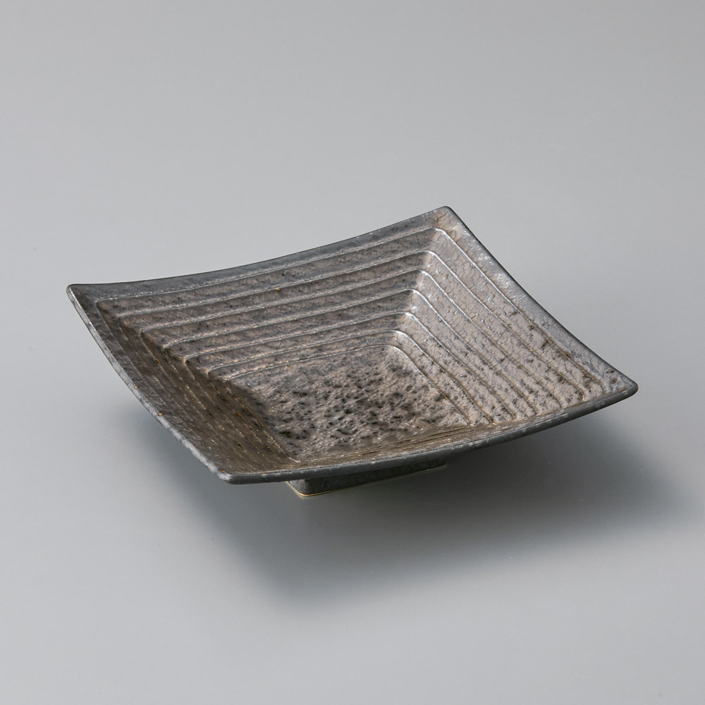 窯変紺千段角盛皿