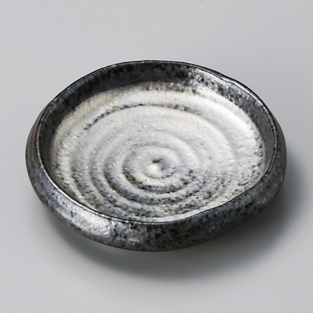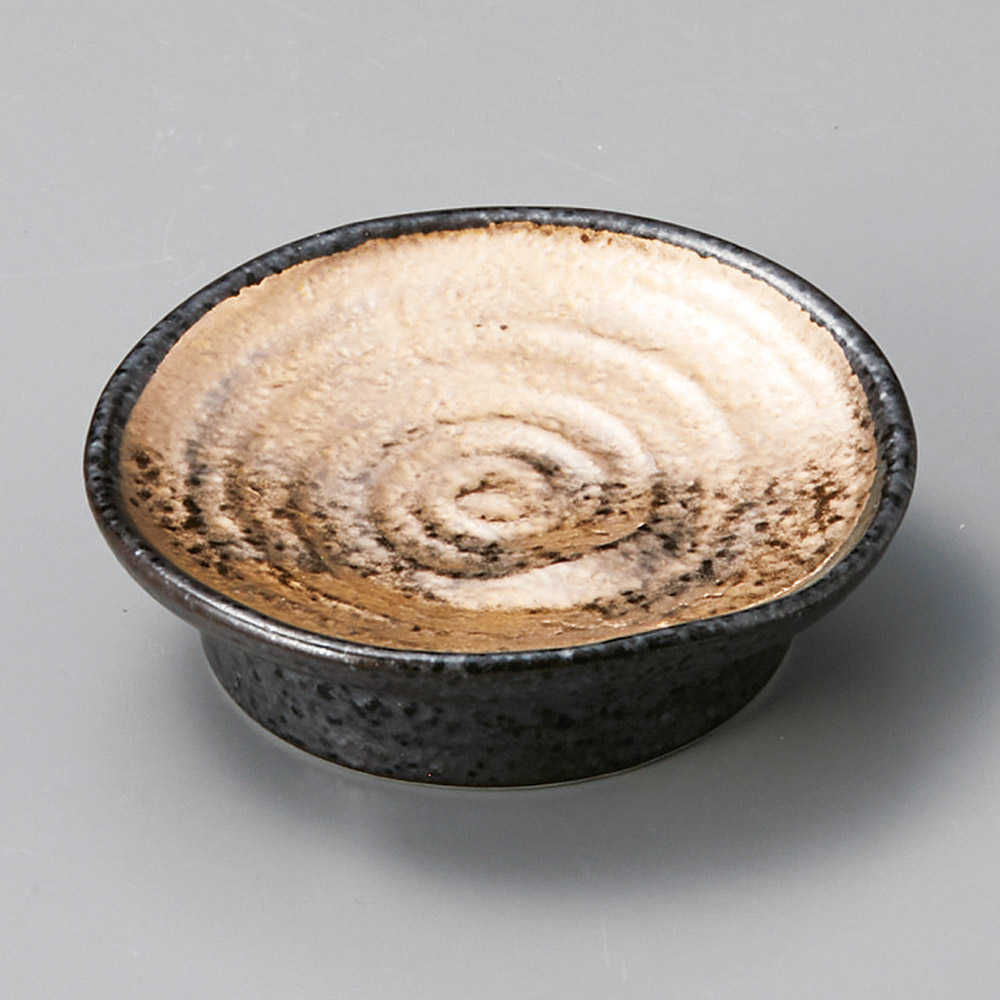 鉄釉白ライン小判小皿