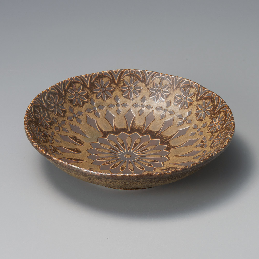 錆格子丸紋トチリ7.0麺皿