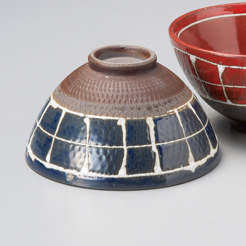 色彩格子飯碗 ブルー