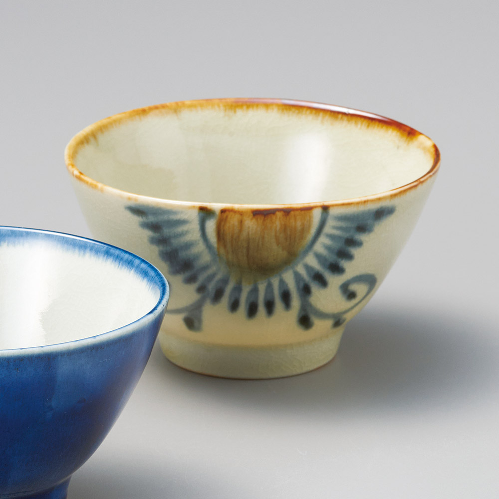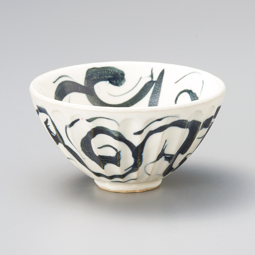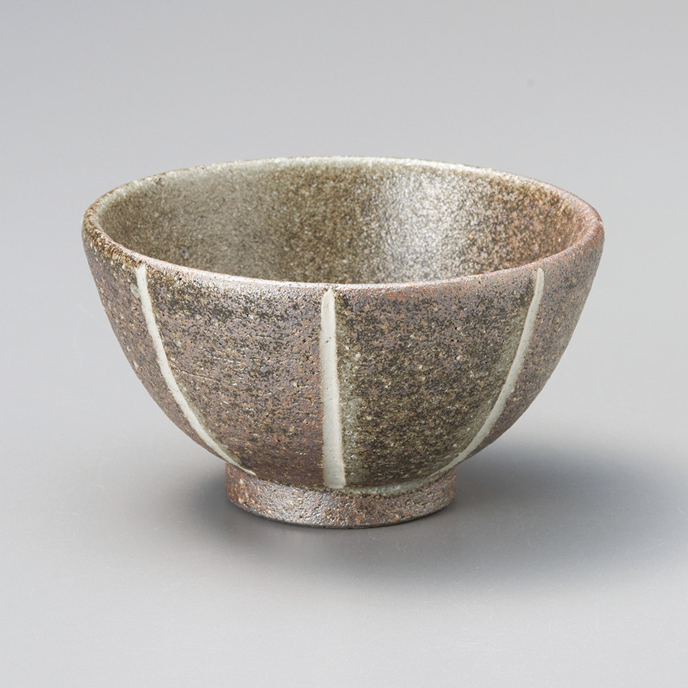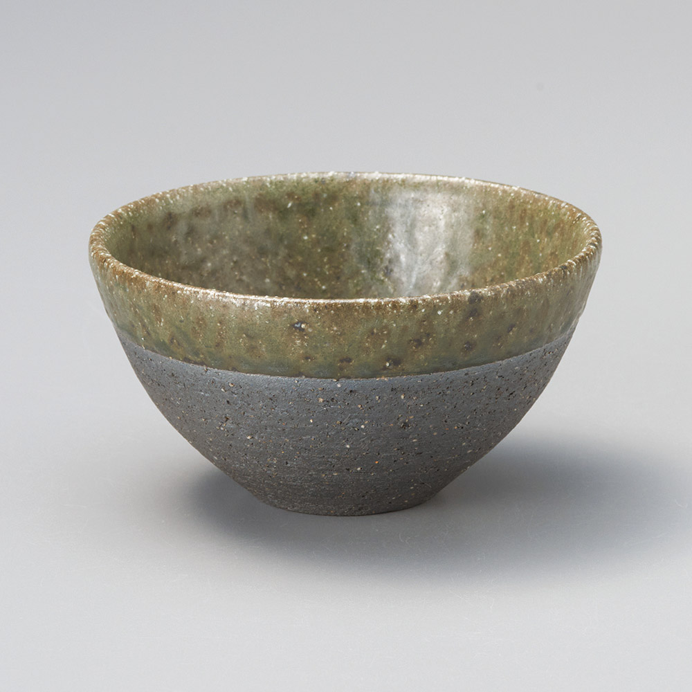 ビードロ灰釉渕錆ろくべ型茶碗(小)