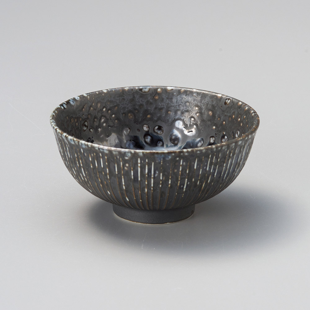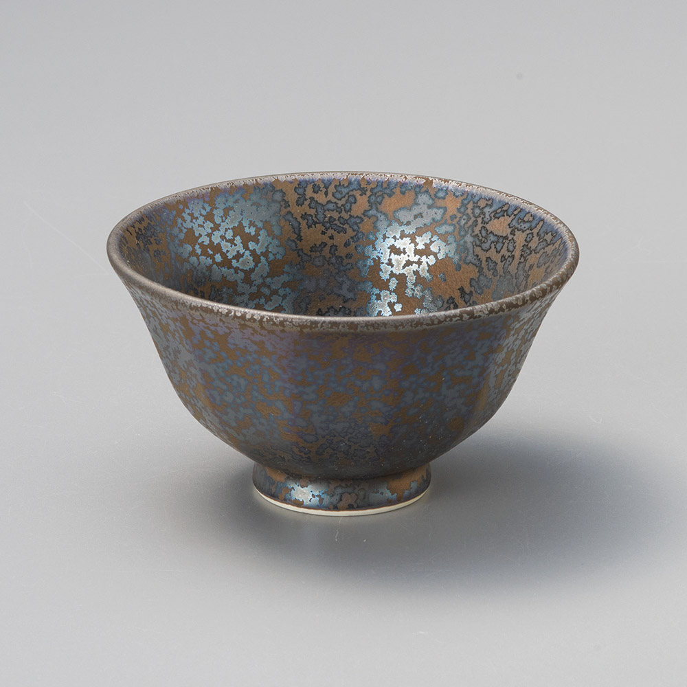 ビードロ灰釉渕錆ろくべ型豆茶碗