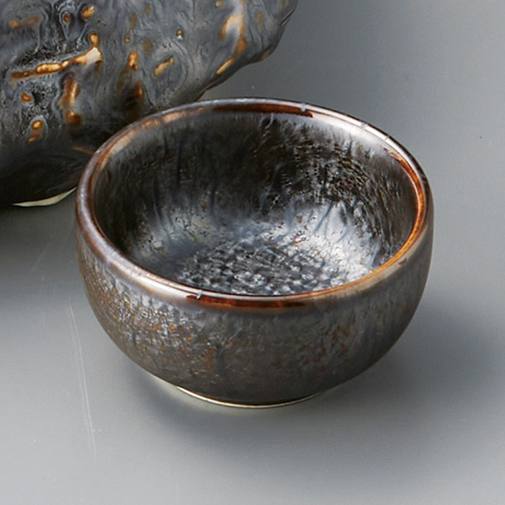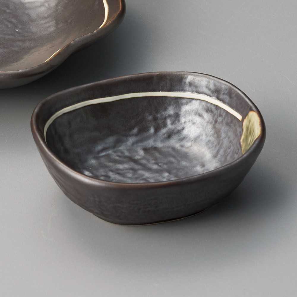 鉄釉ラインだ円小付