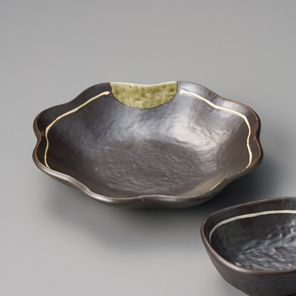 鉄釉ライン花型鉢