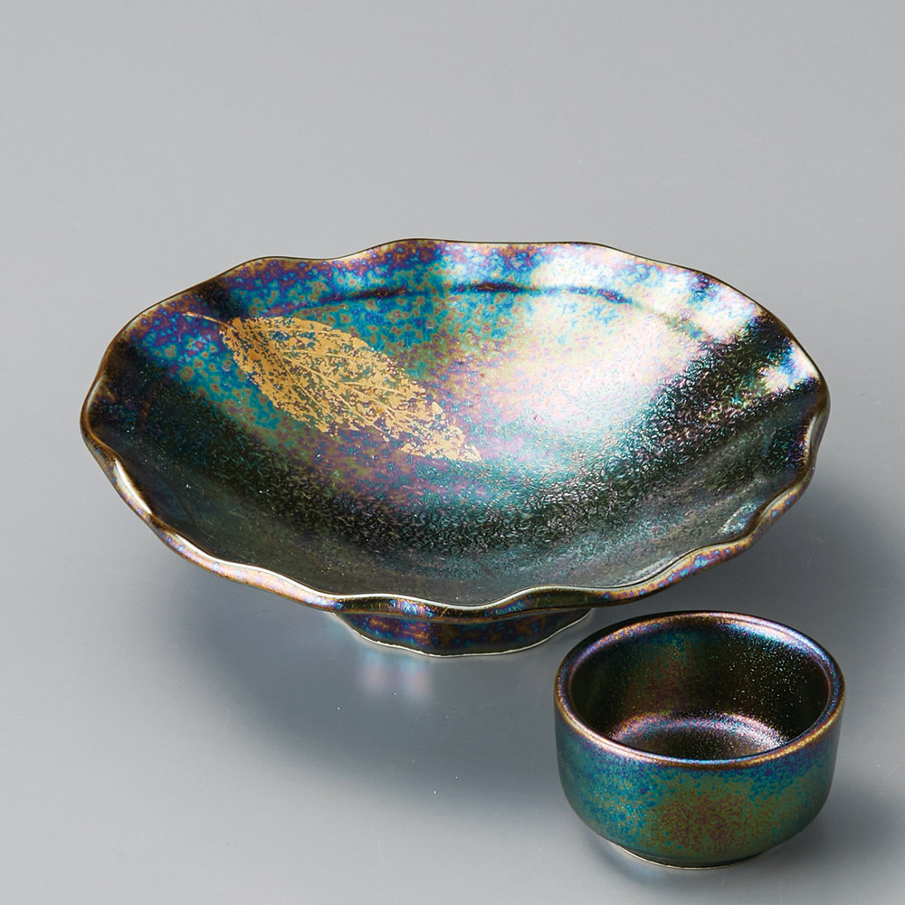 錦ラスター彩金木の葉向付