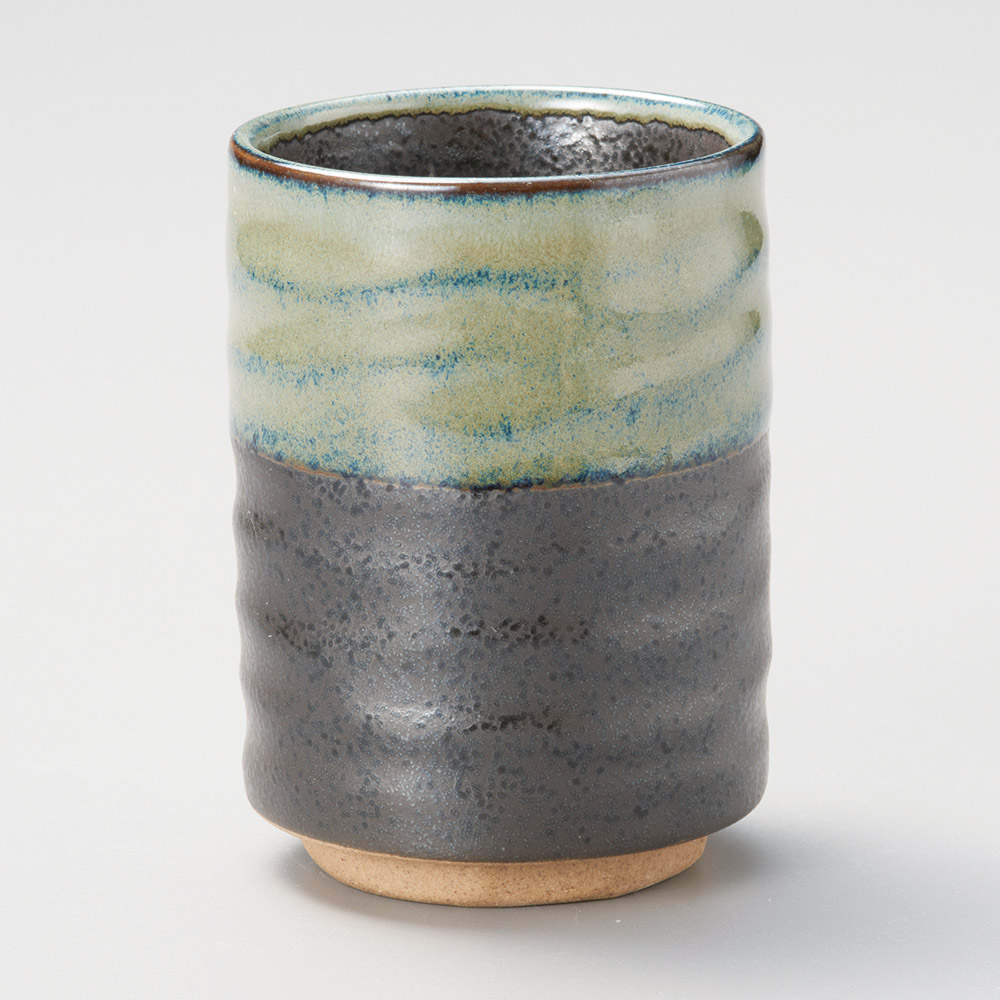 黒水晶流し波削ぎ寿司湯呑 (土物)