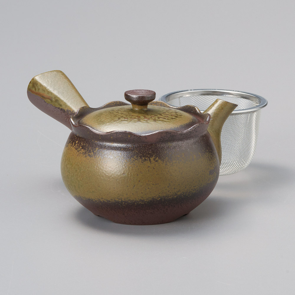 万古急須2.0花みずき織部(カゴ網付)(萬古焼)