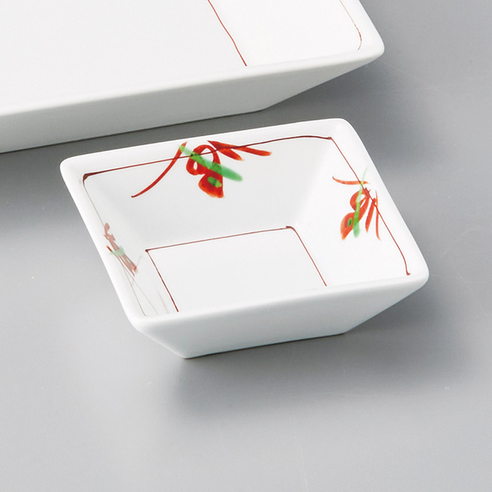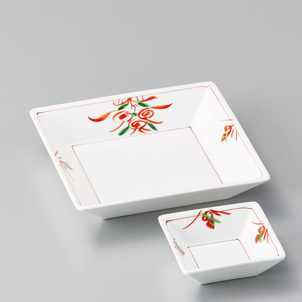 織部三角花刺身鉢(手造り) (土物,手造り)