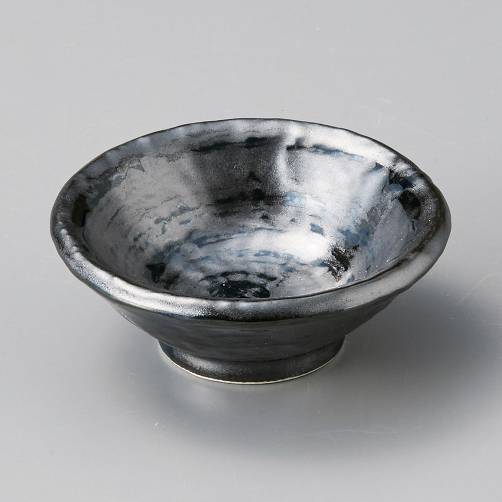虹彩黒浅鉢