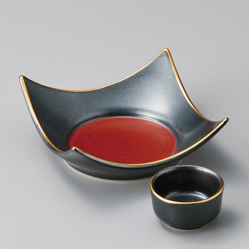鉄砂渕金赤巻向付