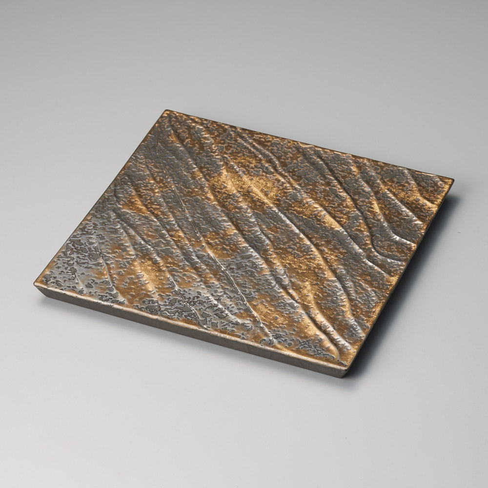 ブロンズ金彩ソギ彫正角皿(大)