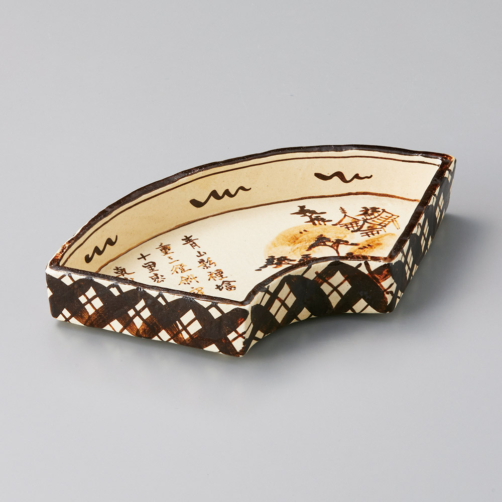 乾山山水扇型向付